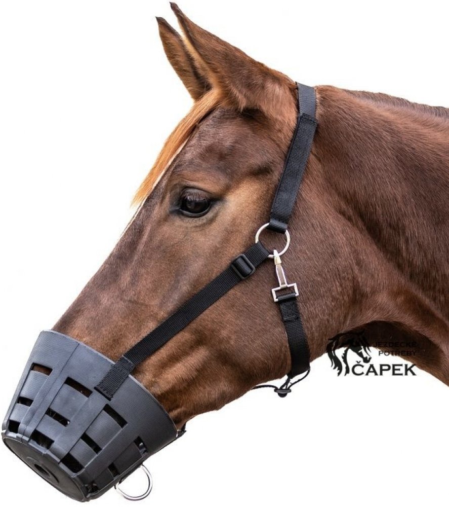 Náhubek z odolného gumového materiálu bránící nadměrné spotřebě trávy u koní trpících na schvácení kopyt. robustní a snadno udržovatelný vysoce kvalitní materiál integrované bezpečnostní zapínání individuální nastavení velikosti neomezuje dýchání omezuje příjem trávy neomezuje možnost pití vody Zákazníci hledají také: pastevní náhubek, košík pro koně, košík proti schvácení