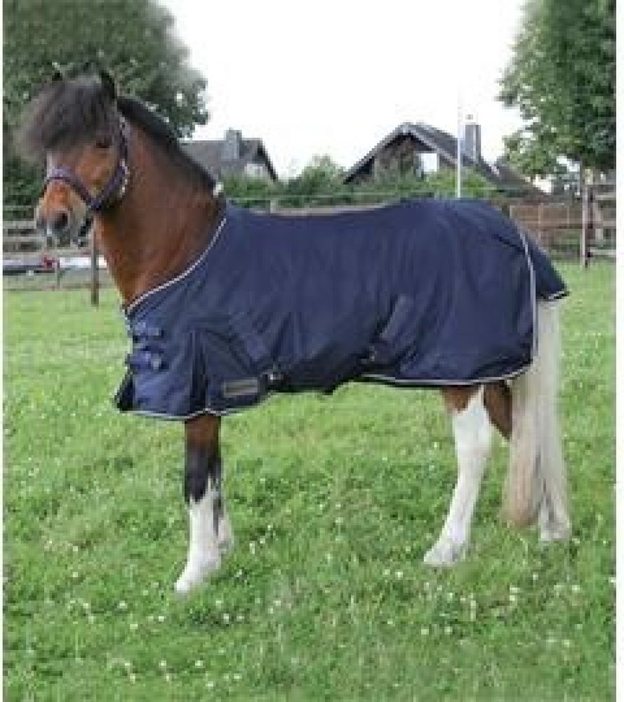 Nepromokavá a zároveň prodyšná deka pro Shetty, vyrobená z odolného kvalitního 600D materiálu. Deka má podšívku, která dobře absorbuje pot, dvojité zapínání na hrudi, křížové zapínání pod břichem, nastavitelné popruhy mezi zadníma nohama a integrovaný chránič ocasu.