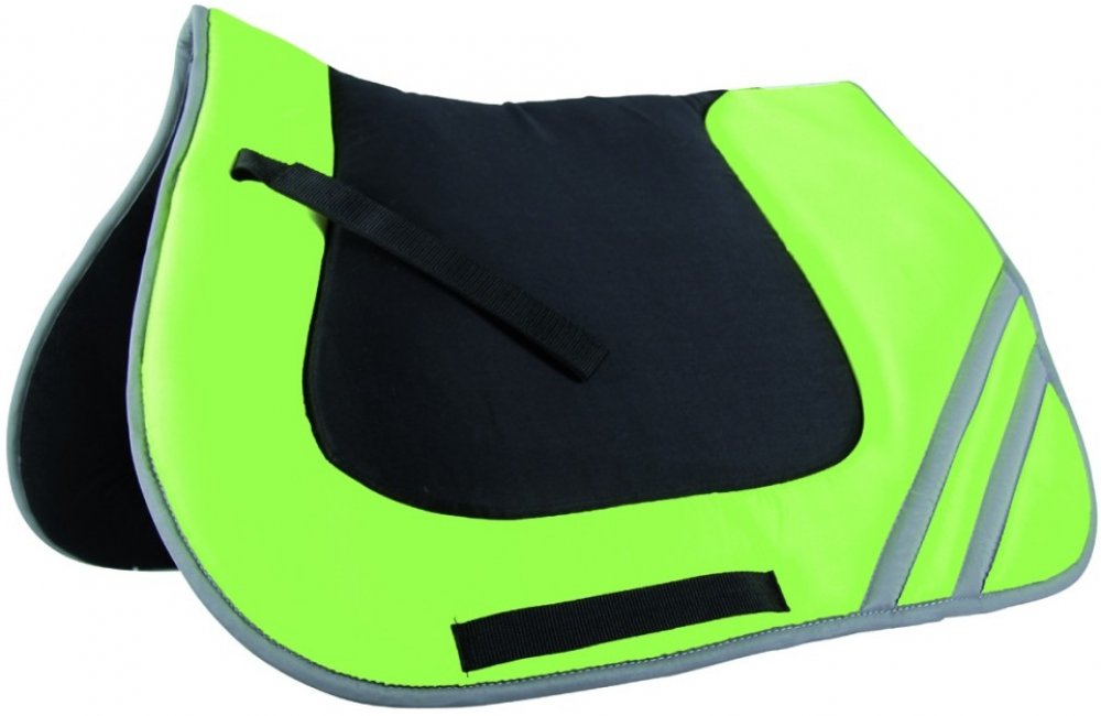 - Neonově žlutý svrchní materiál, jemně polstrovaný a bavlna příjemná k pokožce uvnitř zajišťují větší viditelnost a pohodlí pro koně a jezdce. Podsedlová podložka je navíc lemována reflexní páskou a na každé straně má dva reflexní pruhy. Pruhová poutka se suchým zipem.