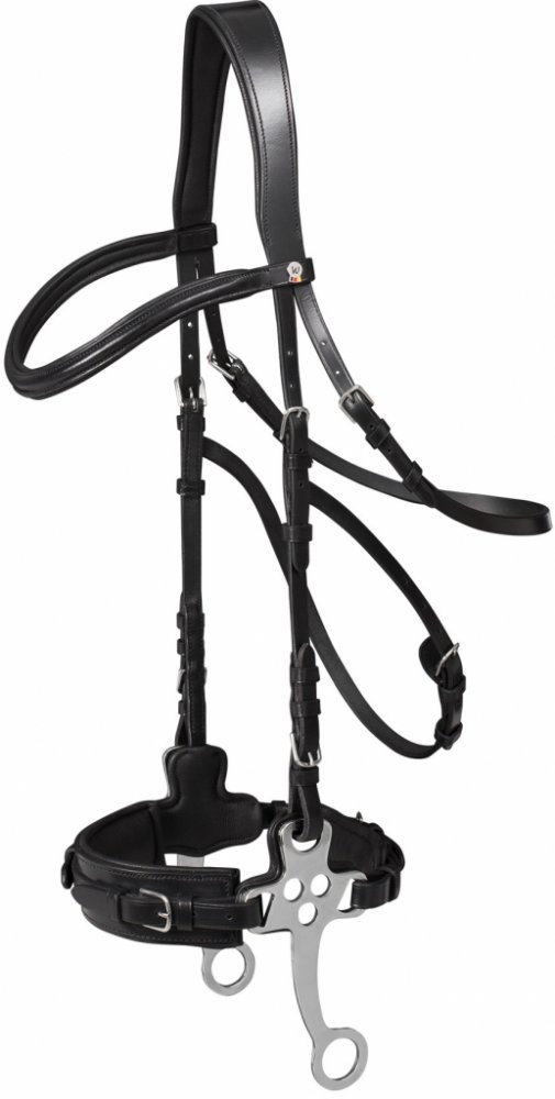 Uzdečka má anatomicky tvarovaný nátylník, tvarovanou čelenku. Hackamore je podložené měkčenou kůží.