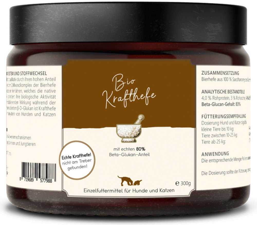 Pivovarské kvasnice nejsou jen pivovarské kvasnice. Kraft kvasnice vynikají kvalitativně vysokým podílem molekul Beta-glukanu. Jsou extrahovány z komplexu buněčné stěny pivovarských kvasnic. To se provádí pomocí speciálního procesu, který zachovává přírodní strukturu molekul Beta-glukanu. To zaručuje jejich biologickou aktivitu i jedinečnou účinnost imunomodulačního účinku při střevním průchodu. Díky vysoké čistotě izolovaného Beta-D-glukanu jsou Kraft kvasnice schopny účinně ulevit metabolismu a imunitnímu systému psů a koček.