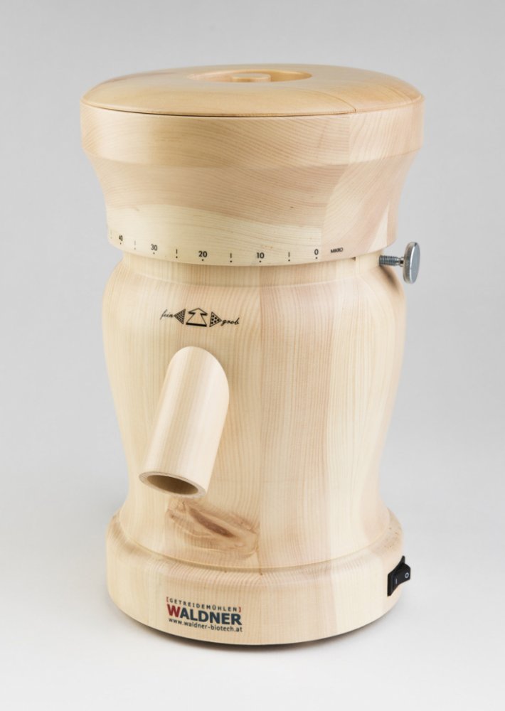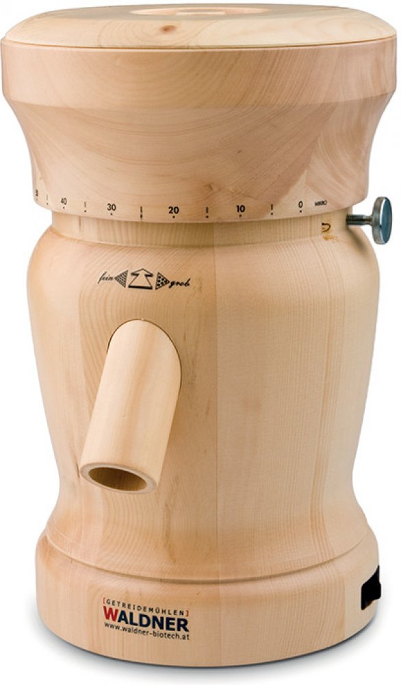Elektrický mlýnek Lady Waldner Biotech stačí postavit na stabilní a vodorovnou plochu a nastavit jemnost mletí (uvolníte jistící šroub a otáčením násypky nastavíte požadovanou hrubost, poté opět zajistíte šroubem). Během krátké chvilky pomelete obilí na kvalitní mouku plnou minerálních látek a vlákniny.