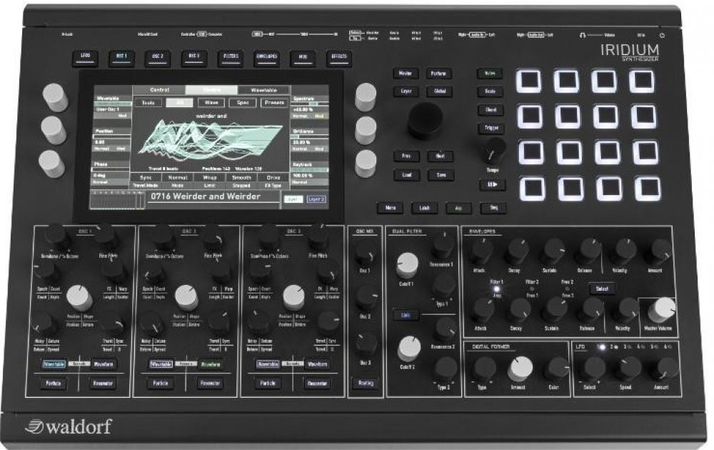 Zvukový modul Iridium Core od Waldorf je hardwarový zvukový modul, který kombinuje vše, co vývojáři značky dosud vyvinuli. Jeho hlavními rysy zahrnují 12hlasou polyfonii, 3 oscilátory schopné pracovat v pěti režimech syntézy (Wavetable, Multi- & Granular-Sampling, Waveform, Kernel FM a Resonator), duální filtry, modulační matice se 40 sloty a vysokou konektivitu. Iridium Core disponuje intenzivním zvukovým průzkumem s nabídkou pěti syntézových enginů a širokou paletou digitálních filtrů. Uživatelé mohou těžit z více než 1700 továrních presetů a vzorků pro inspiraci. Modul je navržen tak, aby byl snadno integrovatelný do různých živých a studiových sestav, kompatibilní s modulárními syntezátory, sekvencery, počítači a dalšími zařízeními. Navíc díky kompaktním rozměrům je Iridium Core ideální pro cestování, snadno se vejde do tašky pro notebook a další vybavení. Jedním z klíčových prvků je jeho kompatibilita s Quantum a dalšími produkty Iridium, včetně sdílení stejné softwarové platformy Waldorf synthesiser OS, což zajišťuje pravidelné společné aktualizace a rozvoj. Uživatelské rozhraní se může pochlubit vysokým rozlišením dotykového displeje s možnostmi ovládání jasu a rychlým přístupem k potřebným parametrům, což činí práci s modulem intuitivní a snadnou.