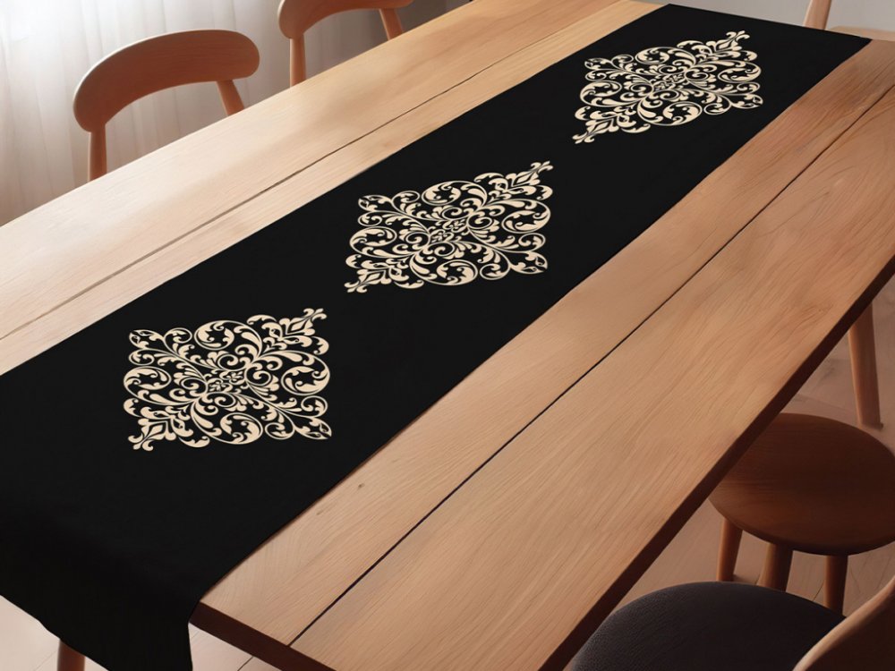 Dekorační běhoun na stůl a vzor ornamentů pro ozdobu i stolování