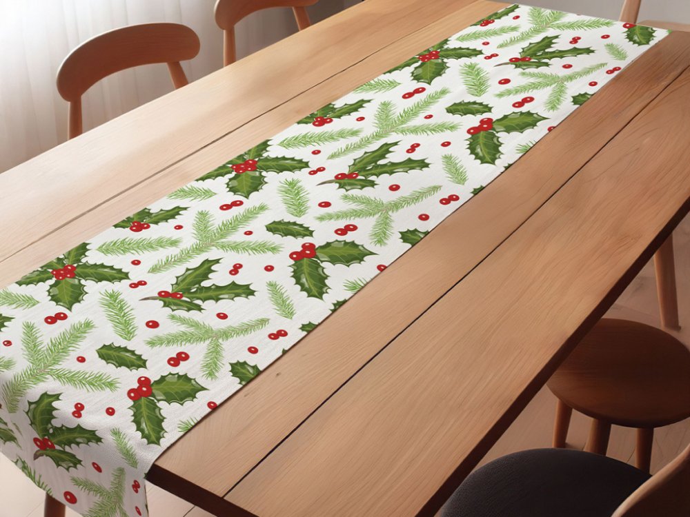 Vánoční běhoun na stůl se vzorem cesmíny pro sváteční období