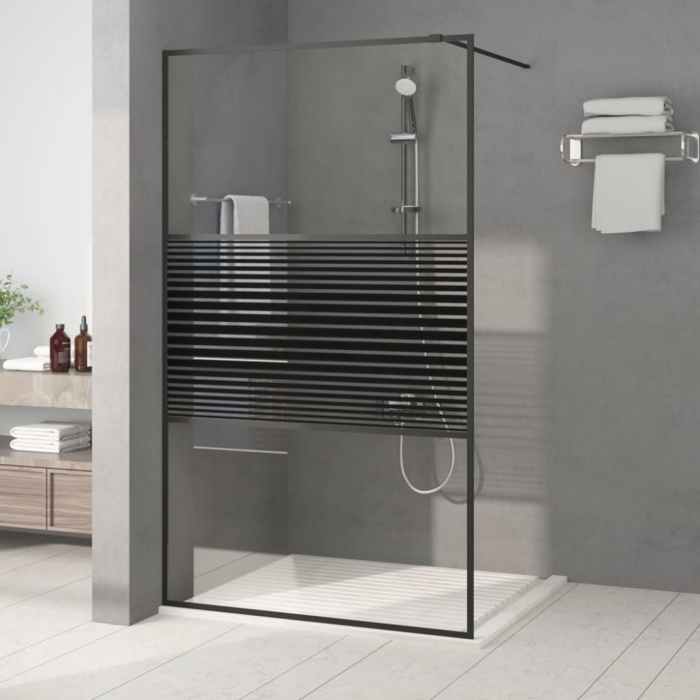 Dopřejte své koupelně svěží a esteticky působivou proměnu s touto moderní sprchovou zástěnou s ESG sklem! Pevná a stabilní konstrukce: Sprchová zástěna má 5 mm silné bezpečnostní ESG sklo a rám z hliníku. Máte tak jistotu, že smontovaná konstrukce zůstane pevná. Nastavitelná velikost: Vzhledem k nastavitelnému profilu se zástěna snadno přizpůsobí jakékoli velikosti a uspořádání koupelny. Snadné čištění: Sprchová přepážka se snadno čistí. Zbývá jen setřít otravné skvrny od vody! Poznámka:Každý produkt je dodáván s montážním návodem v krabici pro snadnou montáž. Barva rámu: černá Materiál: čiré tvrzené ESG sklo, hliník Rozměry: (114–115) x 195 cm (Š x V) Tloušťka skla: 5 mm Rám s nastavitelnou šířkou o 1 cm Délka nosné tyče: 100 cm (bez nastavení) Střední skleněný panel s designem černých pruhů Odolné proti postříkání Balení obsahuje: 1x sprchová zástěna (3 ks skleněných panelů) 1x nosná tyč Ploché hliníkové profily v černé barvě Děti by měly být pod dohledem, aby se zajistilo, že si se spotřebičem nebudou hrát. Udržujte děti mimo prostor montáže. Upozornění: Před použitím si pozorně přečtěte návod k používání a uschovejte jej pro další použití.