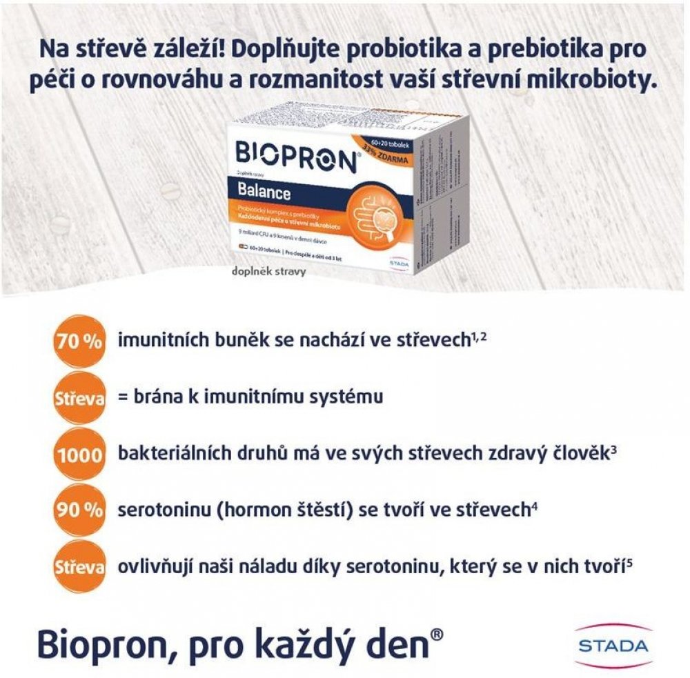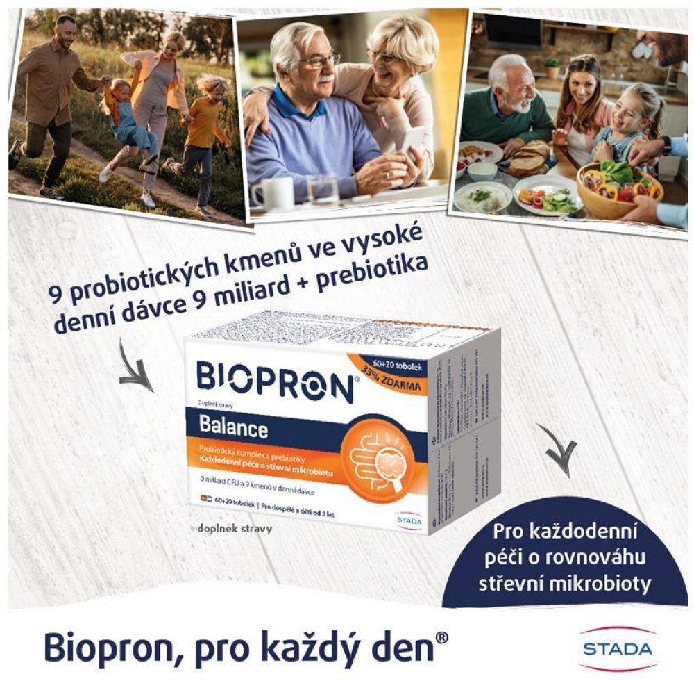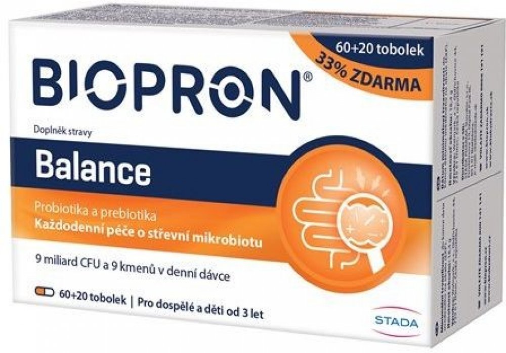 Biopron Balance probiotika a prebiotika pro každodenní péči o střevní mikrobiotu 60+20 tobolek