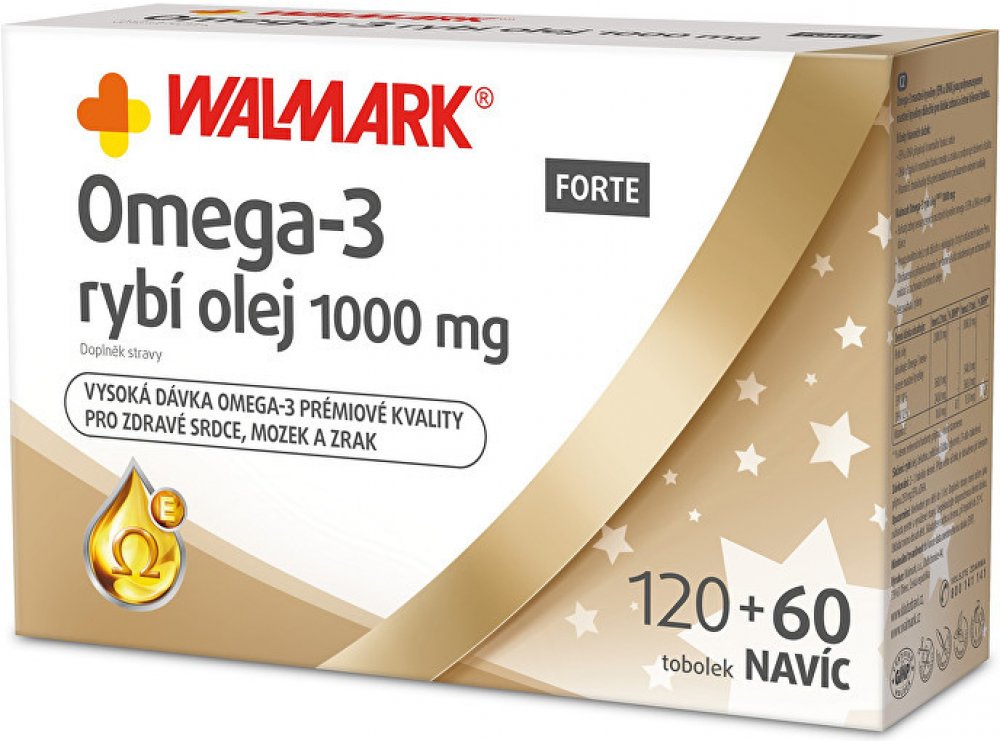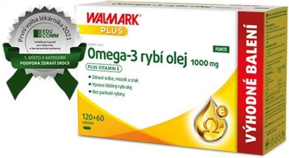 Walmark 180 tbl oleje srdce unisex Walmark pro dospělé perorální od 3 let bez příchutě Česká republika omega-3 mastné kyseliny srdce a cévy 60–90 2000.0 mg Kdykoliv 2–3× za den Pokojová teplota (do 25°C) s vitamínem E