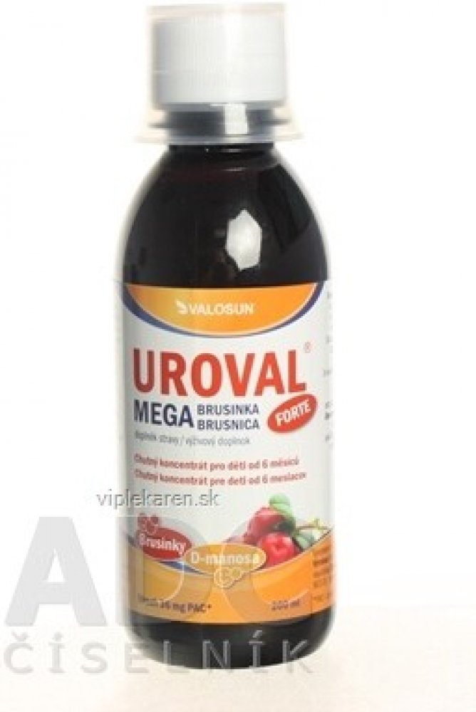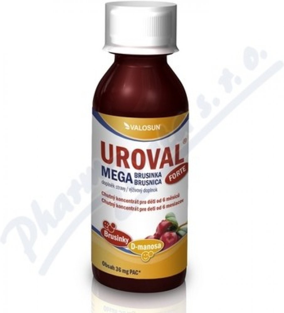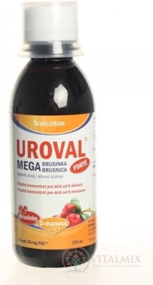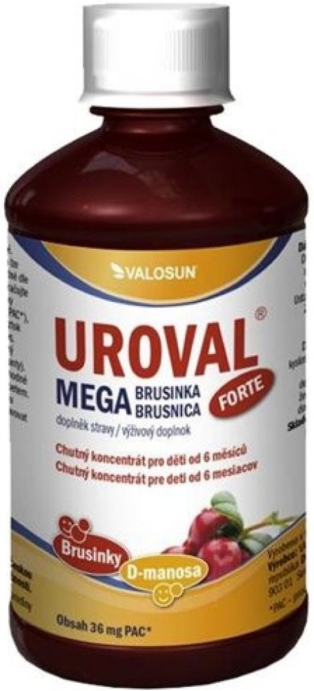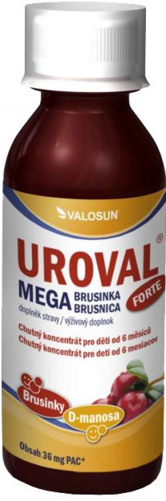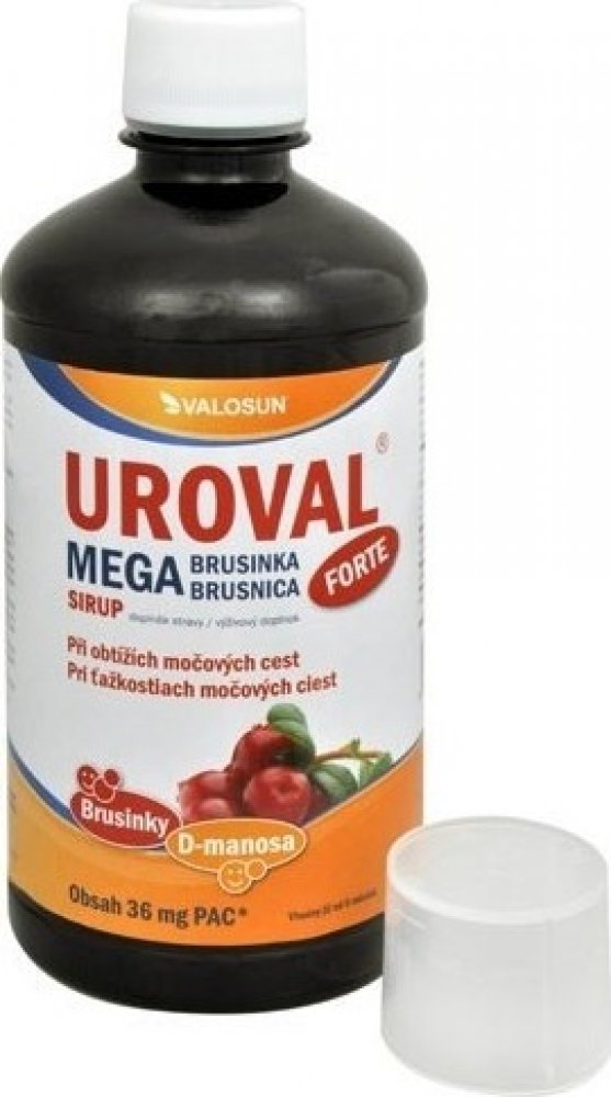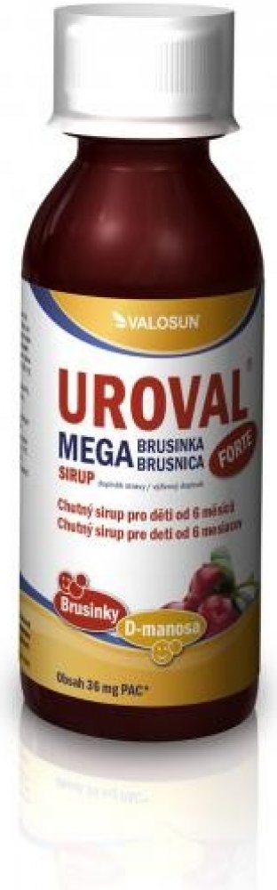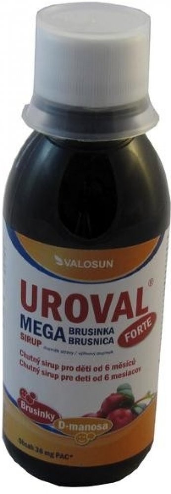 UROVAL sirup obsahuje vysoce kvalitní extrakt brusinky s vysokým obsahem proanthokyanidinů a monosacharid D-manosu. Forma sirupu je vhodná pro malé děti.