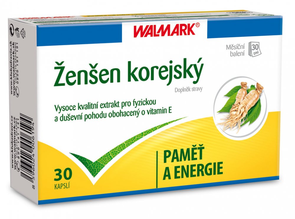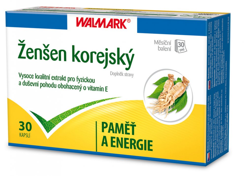 Walmark 30 tbl kapsle 125 ml paměť a koncentrace unisex 36 g Walmark pro dospělé perorální bez příchutě Česká republika ženšen energie a koncentrace 30 1000.0 mg Kdykoliv 1 za den Pokojová teplota (do 25°C) s vitamínem E