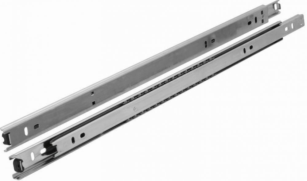 Zásuvka se vysouvá částečně. Nosnost výsuvu je 15 kg. Nosnost je přímo úměrná jednomu páru. KVALITA: Kolejnice s kuličkovým ložiskem je vyrobena z vysoce kvalitní oceli a následně byla pozinkována. Díky kvalitnímu zpracování je zajištěn optimální chod výsuvu a velmi vysoká stabilita. Výsuv pro montáž do bočnice zásuvky a korpusu skříňky. Šuplík vložíte do korpusu na našroubované pojezdy. Výsuv má záklapku v uzavřené poloze, která brání samovolnému otevírání zásuvky. Výsuv se montuje pomocí vrutů nebo šroubů se zápustnou hlavou.