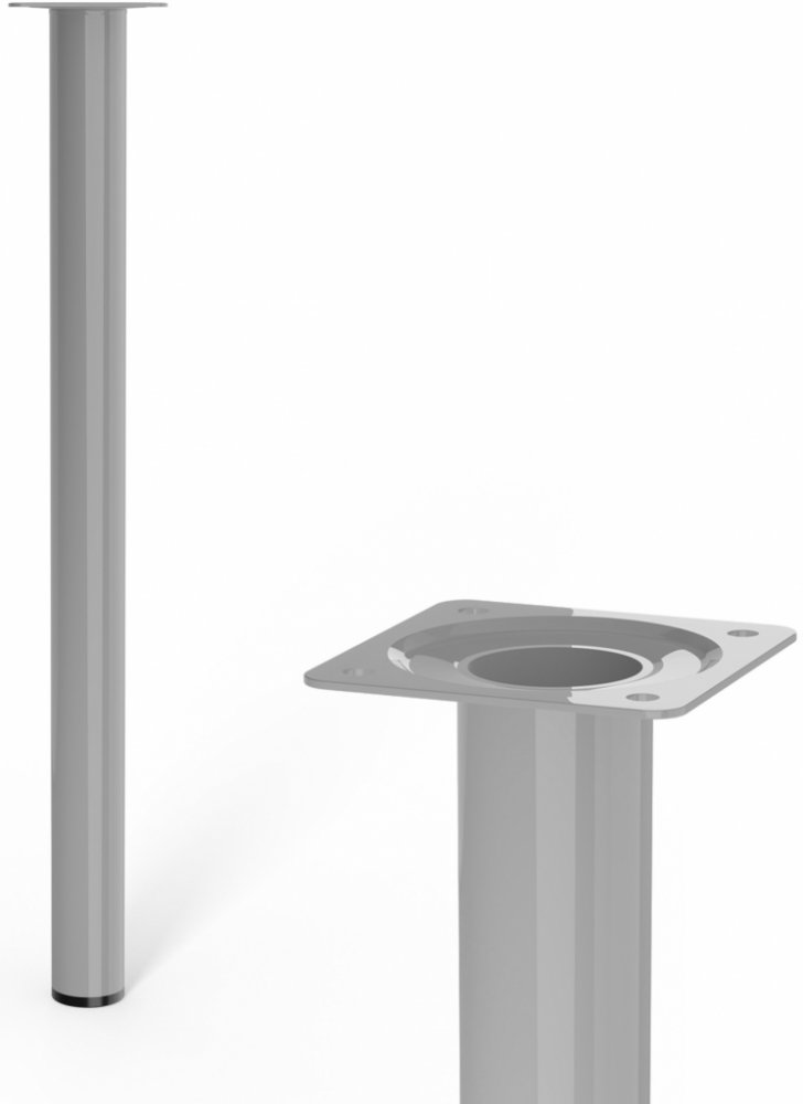 Kulatá kovová nábytková noha v barvě bílý hliník/stříbrná o průměru 30 mm s robustní základnou a spodním plastovým kluzákem. Možnost dokoupení volitelného nastavovacího šroubu se závitem M10, který kompenzuje možné nerovnosti podlahy.