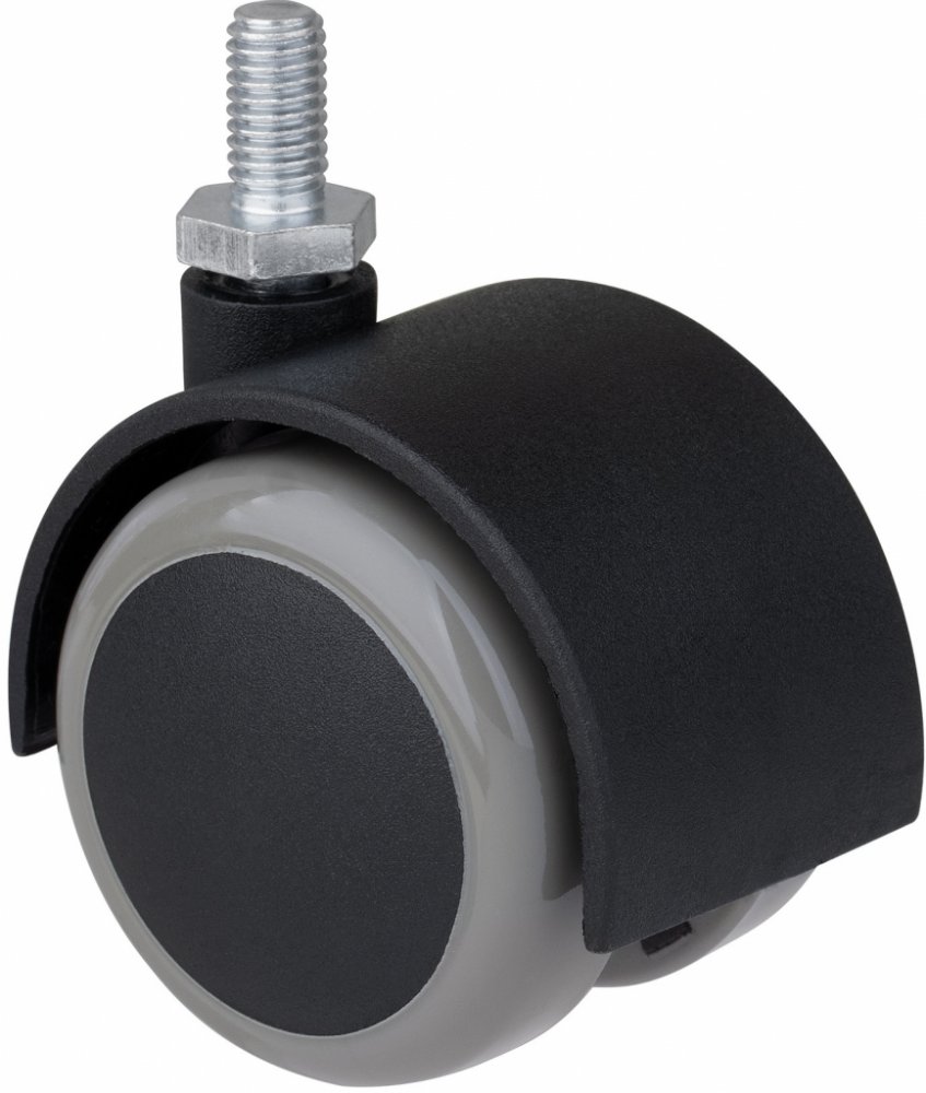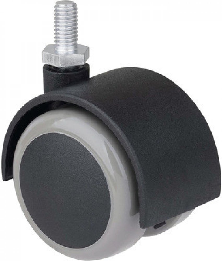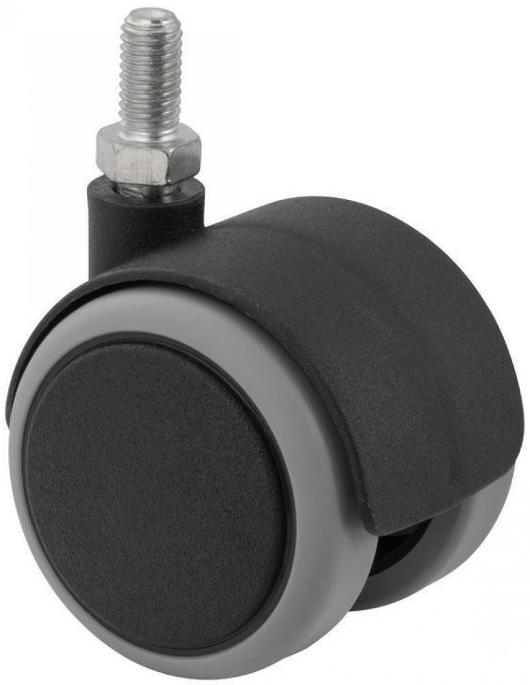 Celoplastové nábytkové dvojkolečko o průměru 50 mm a závitem M8x16 mm s nosností do 50 kg vhodné k uchycení na nábytek. Kolečka pro tvrdé podlahy jako jsou dlažby, dřevěné plovoucí podlahy, průmyslové podlahy.