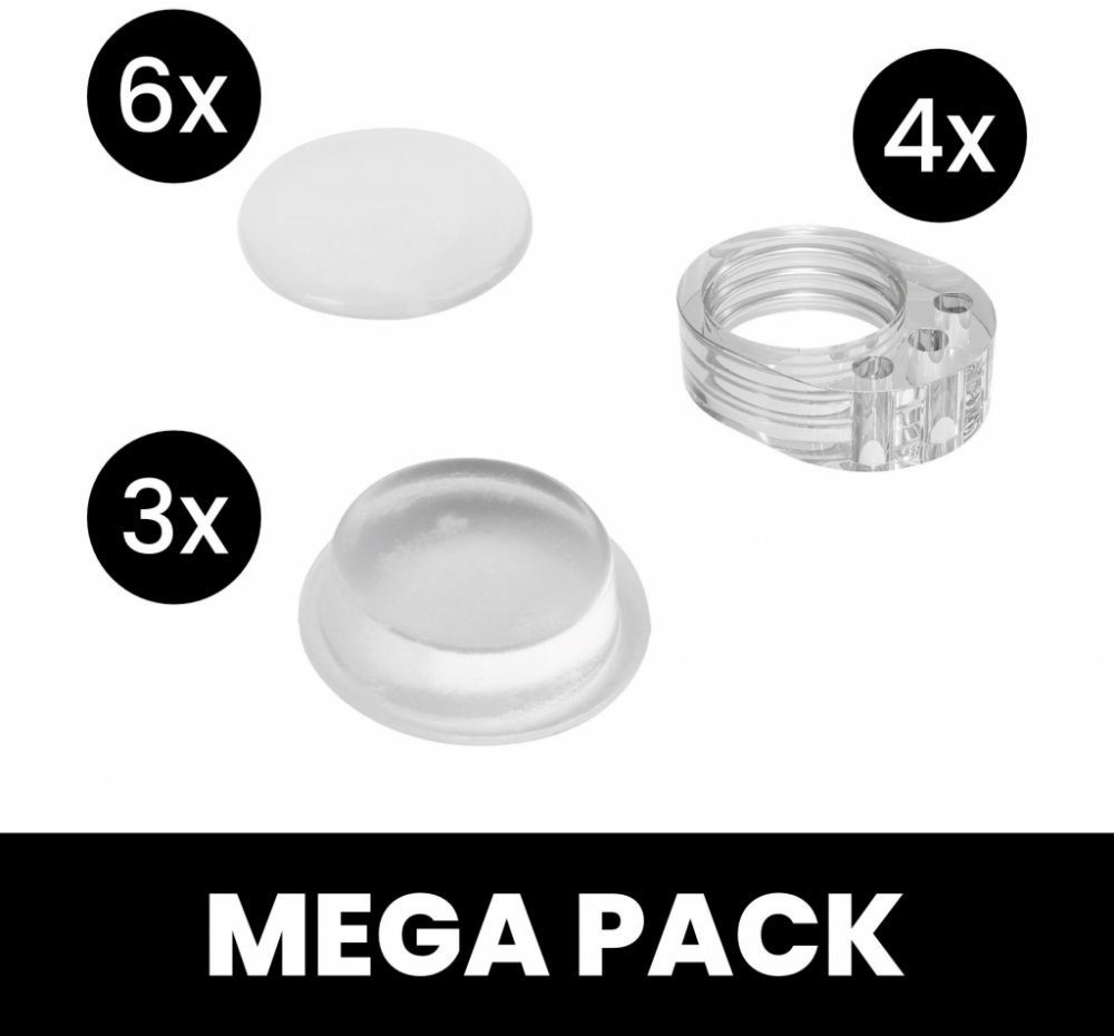 6× samolepicí zarážka na zeď (Ø 39 mm) – ideální za dveře, za skříně, za toaletní prkénko nebo kamkoliv, kde chcete ochránit zeď či nábytek. Díky samolepicí vrstvě snadno přilne k většině povrchů.