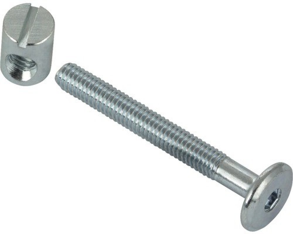 Spojovací šroub o průměru 6 mm a výšce 50 mm se závitem M6 s válečkovou maticí (výška 14 mm, šířka 10mm). Součástí balení 4 ks.