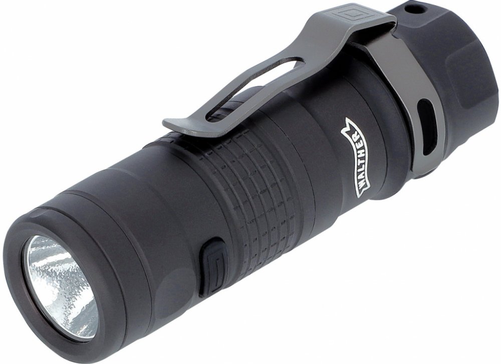 Svítilna Walther EFC1Extrémně kompaktní, výkonná a odolná svítilna značky Walther.Tělo svítilny EFC1 je vyrobené z odolného eloxovaného hliníku. Ve spojích svítilny byly použity těsnící kroužky pro zajištění voděodolnosti s certifikací IXP8.Jako zdroj světla se u svítilny Walther EFC1 využívá LED dioda Nichia 319B, která má výkon až 400 lm. Svítilna má několik režimů svitu. Přepínání se provádí stiskem tlačítka na hlavě svítilny. Režim Turbo - 400 lm, High - 200 lm, Medium - 50 lm, Low - 5 lm. Při nejvyšší výkonu má svítilna dosvit až 110 m a při nejnižším výkonu lze svítit až 30 h.Napájení světelného čipu svítilny Walther zajišťuje alkalická baterie typu CR123 3V, která je součástí balení. Svítilnu lze provozovat na také na bateriový článek 16340, kdy svítilna dosahuje výkonu až 450 lm.Součástí balení je také odnímatelná kovová spona pro zajištění svítilny v kapse a také nylonové opaskové pouzdro.Parametry svítilny Walther EFC1: délka 86 mm, průměr hlavy 25,4 mm, průměr těla 25,4 mm, hmotnost 105 g.