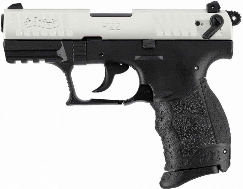 Plynová pistole Walther P22Q cal.9mm kat. PO bicolorJedinečná, 100% věrná replika inovovaného modelu P22Q firmy Walther. Od ostrého provedení se liší jen hlavní, která je opatřena přepážkou z tvrdokovu.Povrchová úprava niklováním je velmi odolná a realistická. Loga na závěru tohoto faceliftu základního modelu Walther P22 jsou ražena.Walther P22 Q má speciální konstrukci založenou na kombinaci kovu a tvrzeného polymeru používaného i u ostrých zbraní. Tento typ konstrukce zbraně se volí tam, kde chtějí výrobci snížit hmotnost zbraně, zlepšit odolnost vůči nepříznivým podmínkám a zpříjemnit úchop zbraně. Cesta náboje je samozřejmě celá z kovu stejně tak jako ukotvení do polymerového rámu přecházejícího v rukojeť.Největší lahůdkou Waltheru P22Q je exceletně tvarovaná ergonomická rukojeť, která padne snad každému. Její povrch se také liší od půbodního modelu a to použitím vzoru tzv. rybiny. Takto řešená rukojeť má ještě lepší vlastnosti stability držení.Systém střelby jako u ostré verze poloautomat. Natažení zbraně je nutné jen před prvním výstřelem. Po výstřelu se pistole znova nabije a připraví ke střelbě sama.Spoušťový mechanismus modelu Walther P22Q kombinuje Single Action i Double Action. Při stisku spouště se kohout automaticky natahuje.Umarex Walther P22 Q je samozřejmě vybavený také pojistkou, zajištěním proti nechtěnému výstřelu. Pojistka se nachází v zadní části zbraně vedle kohoutu kde je snadno dostupná pro ovládání palcem. Ovládá se nahoru a dolů.Vypouštěč zásobníku integrovaný do lučíku pistole se ovládá tahem dolů. Palcem a ukazovákem obejmete zadní část lučíku po stranách a boky potáhnete směrem dolů. Tímto z Waltheru P22Q uvolníte sedmiranný zásobník.Pro splnění podmínek prodeje této zbraně bez nutnosti vlastnictví zbrojního pasu je hlaveň Walther P22 Q opatřena přepážkou z tvrdokovu, která 100% zamezí výstřelu jakéhokoliv jiného náboje než plynového poplašného - startovacího, plynového PV, PV-S či CS náboje. Je tedy volně prodejná od 18ti let.Plynové si