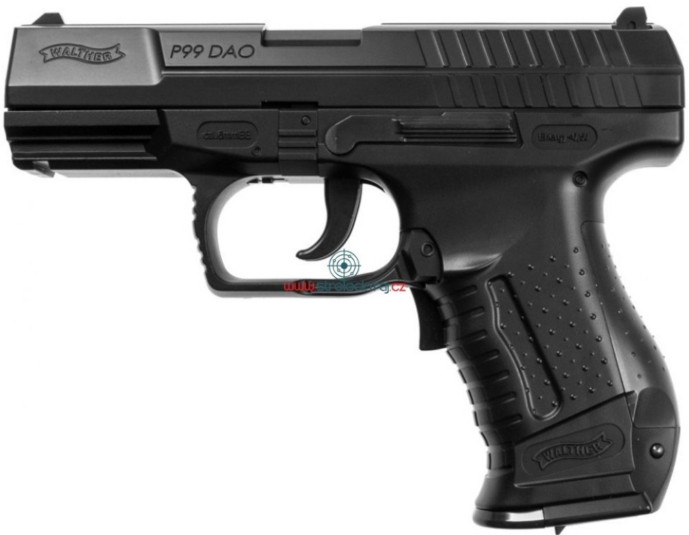 Airsoft pistole Umarex Walther P99 DAO. Replika neměcké pistole Walther P99, díky licenci se může pyšnit originálním ražením německé zbrojovky Walther. Pohání ji 4x AAA baterie.