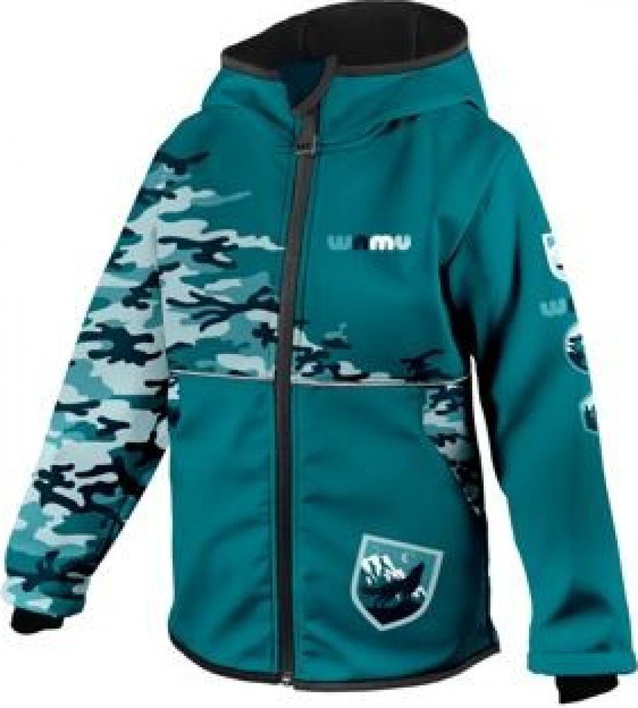 Wamu dětská softshellová bunda Maskáč petrolejová