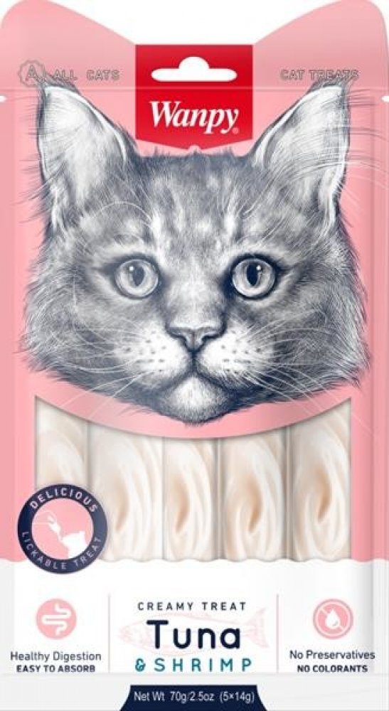 Wanpy Cat Creamy Lickable Treats - Tuna & Shrimp 5 x 14 g
