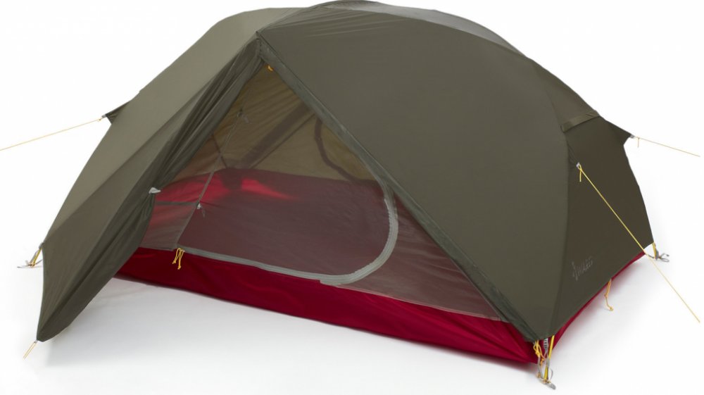 Originální typ konstrukce zajišťuje opravdu dostatek prostoru pro dvě osoby a dva batohy (50 l). Batohy lze umístit do předsíněk, ale i když zůstanou uvnitř (u nohou), tak je tam stále dost místa na spaní pro dva (oba máme přes 180 cm). Předsíňky se také využili jako závětří při vaření.