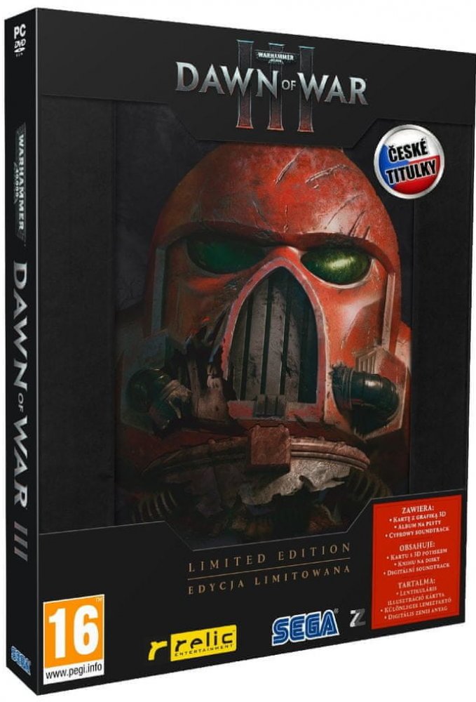 Warhammer 40,000: Dawn of War III obsahuje základní hru a soundtrack. Vstupte do krvavého střetu tří frakcí na planetě Acheron, kde objevení katastrofické zbraně nutí Orky, Eldar a Space Marines bojovat o přežití.