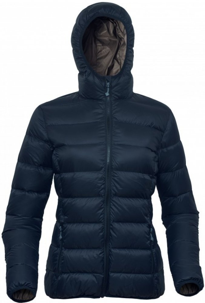 Lehká dámská péřová bunda s kapucí a materiálu Loft Nylon DWR+ se střihem přizpůsobeným dámské postavě.