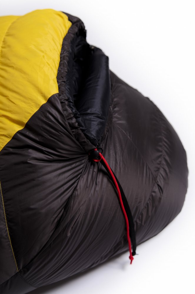 Spacák je vyroben z lehoučkého Loft Nylonu DWR+, který dokáže odpuzovat vodu do 1 250 mm vodního sloupce. Tento pevný a mechanicky odolný materiál skvěle spolupracuje s péřovou náplní a umožňuje jí dostatečný loft.