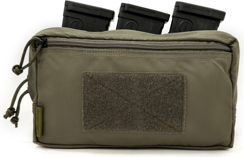 Tato robustní a modulární utility sumka je ideální pro přenášení 3 puškových zásobníků ráže 5.56 mm (např. AR15/M4) nebo 7.62×39 mm (např. AK). Díky vnitřním termoplastickým vložkám poskytuje rychlý přístup a bezpečné uchycení zásobníků i při dynamickém pohybu. Velká přední kapsa na zip umožňuje přenášet další vybavení, jako jsou lékárnička, rukavice, mapy, multitool, administrativní pomůcky nebo navigace.