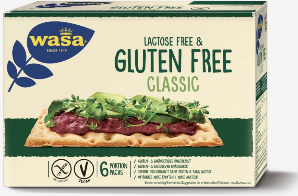 Knäckebroty Gluten Free jsou křupavou náhradou klasického chleba a pečiva, která vás dokonale zasytí. Trvanlivé chlebíčky obsahují vysoké množství vlákniny, vitamínů, minerálů a dalších látek prospěšných pro zdraví. Díky nízkému obsahu tuků jsou vhodné i jako součást redukčních diet. Knäckebroty Gluten Free - křupavé náhrady pečiva vhodné i do dietyKnäckebroty Gluten Free jsou křupavé celozrnné náhrady pečiva ze Švédska. Díky vysokému obsahu vlákniny, vitamínů, minerálů a dalších prospěšných látek jsou ideální do diet či jako součást zdravého životního stylu. Knäckebroty byly původně vyráběny z celozrnné žitné mouky, soli a vody. Později se k nim začaly přidávat i různé druhy koření, semínek či ochucovadel. Dejte si je k snídani, svačině či večeři s přílohou, po jaké váš apetit právě touží, a užijte si jejich jedinečnou chuť a úžasnou lehkost.Knäckebroty Gluten Free a jejich výhody trvanlivá náhrada klasického pečivaobsahují vysoké množství vlákniny, vitamínů a minerálůvhodné jako součást zdravého životního styluSloženíBramborový škrob, rýžová mouka, amarantová mouka, řepkový olej, vláknina z cukrové třtiny, bezlaktózové odtučněné sušené mléko, cukrový sirup, cukr, sušený rýžový kvas (rýžová mouka, voda), emulgátor: mono- a diglyceridy mastných kyselin; droždí, jedlá sůl, zahušťovadlo: guma guar; fenykl, anýz, kmín.Tabulka nutričních hodnotNutriční hodnoty100 gEnergetická hodnota1680 kJ / 398 kcalBílkoviny4,5 gTuky7,8 gz toho nasycené kyseliny1 gSacharidy74,2 gz toho cukry5,3 gVláknina6,7 gJedlá sůl1,4 g
