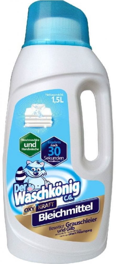 Waschkonig Oxy Kraft obsahuje aktivní kyslík, který krásně vyběluje prádlo a intenzivně působí na zaschlé a odolné skvrny na prádle. Velmi účinný na skvrny od kávy, čaje, džusu, vína, trávy, bláta, ovoce, zeleniny, coly, inkoustu apod. Vhodné pro bílé prádlo. Vhodný pro praní, namáčení i ruční praní. Neobsahuje chlor, čímž se stává šetrný pro vaše prádlo. Nepoužívejte na vlnu, hedvábí a kůži.