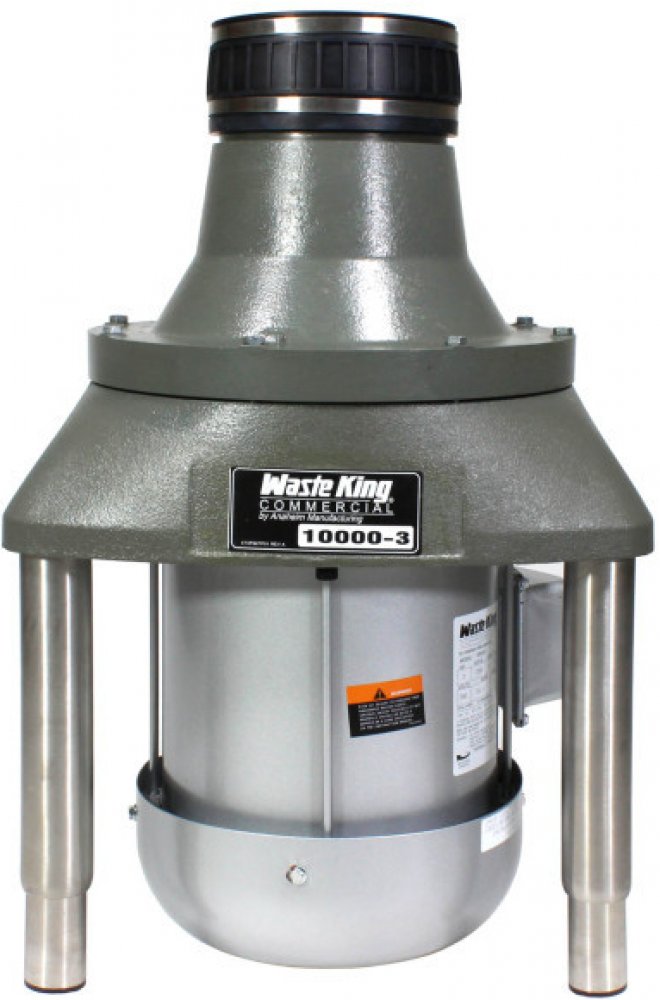 Waste King Commercial 10000 s výkonem 7460 W (10 HP) si poradí i s obtížně zpracovatelným organickým odpadem. Komerční drtič kuchyňského odpadu pro nepřetržitý, 24 hodinový provoz. Je vhodný do velkých gastronomických podniků, jako jsou závodní jídelny (až 6000 jídel ve špičce). Taktéž je vhodný do palíren, bioplynových stanic, kompostáren a dalších míst, kde je zapotřebí zpracovávat velké množství odpadu. Nerezové čepele si poradí i s houževnatým či tuhým materiálem, jako je syrové maso, kukuřičné klasy, pecky a kosti.