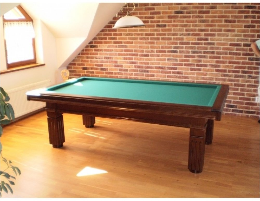 Design je odkazem na tradiční francouzské interiéry. Celý stůl je z bukového dřeva s masivní dřevěnou konstrukcí. V případě naší výroby je odstín kulečníku na přání. Stůl je ozdobou každého interiéru.
