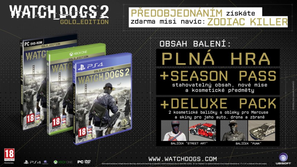 Season Pass: Prodlužte si zážitek ze hry Watch Dogs 2 za pomoci Season Passu zpřístupňujícího množství DLC, dodatečných misí a předmětů.