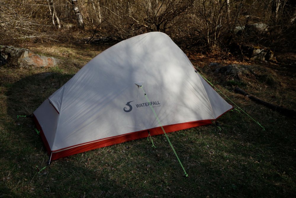 Nepříjemnou vlastností ultralehkých stanů často bývá náročnost jejich zabalení a uložení zpět do obalu. Výrobce stanu Waterfall Double UL tento fakt zohlednil a proto je v obalu dostatečná rezerva. Přesto lze i bez většího úsilí dostat rozměry sbaleného stanu pod 40 cm x 13 cm.