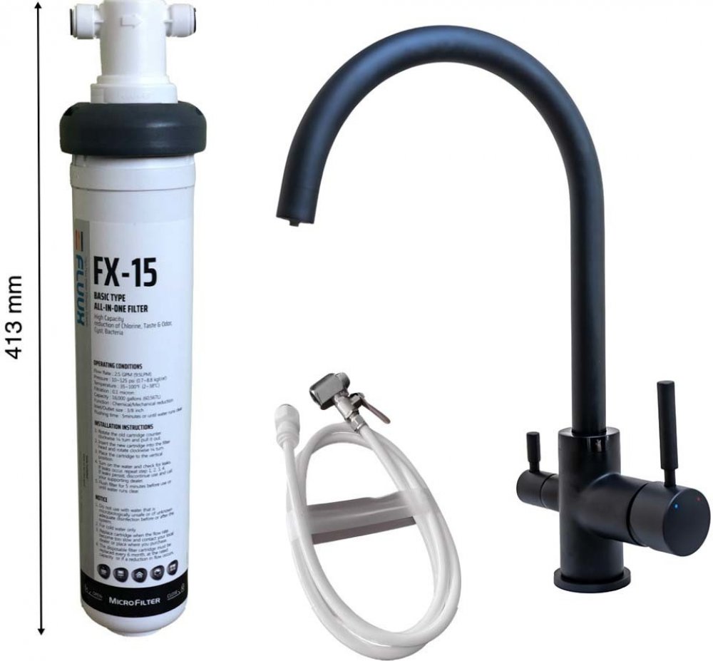 Výhodný set trojcestné dřezové baterie a multifunkčního bajonetového filtračního systému. Systém k umístění do spodní skříňky kuchyňské linky. Snadná a rychlá výměna filtrační patrony, kterou zvládne vyměnit každý snadno a rychle bez použití nářadí. Filtrovaná voda má svou vlastní vodní cestu na dřez bez nutnosti instalace přídavné baterie/výdejního kohoutku. Vhodné pro domácnosti i kanceláře.