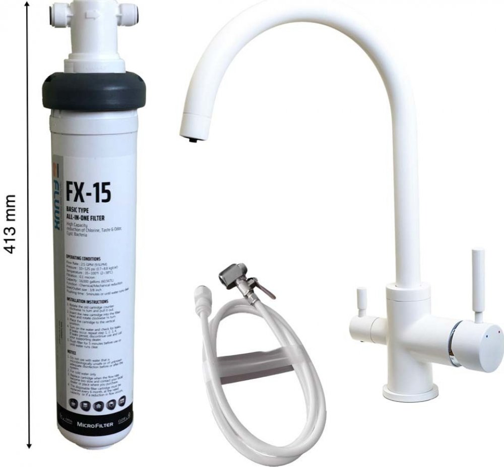 Výhodný set trojcestné dřezové baterie a multifunkčního bajonetového filtračního systému. Systém k umístění do spodní skříňky kuchyňské linky. Snadná a rychlá výměna filtrační patrony, kterou zvládne vyměnit každý snadno a rychle bez použití nářadí. Filtrovaná voda má svou vlastní vodní cestu na dřez bez nutnosti instalace přídavné baterie/výdejního kohoutku. Vhodné pro domácnosti i kanceláře.