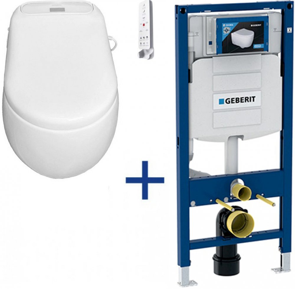 Moderní elektronické přídavné bidetové prkénko s dálkovým ovládáním ve výhodném perfektně kompatibilním setu se závěsnou bezokrajovou kapotovanou mísou KERASAN FLO a WC modulem pro suchou instalaci do sádrokartonové příčky.