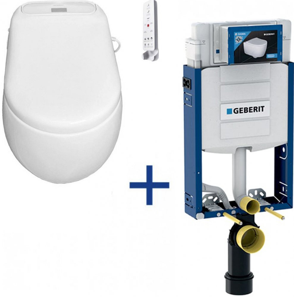 Moderní elektronické přídavné bidetové prkénko s dálkovým ovládáním ve výhodném perfektně kompatibilním setu se závěsnou bezokrajovou kapotovanou mísou KERASAN FLO a WC modulem pro suchou instalaci do sádrokartonové příčky.
