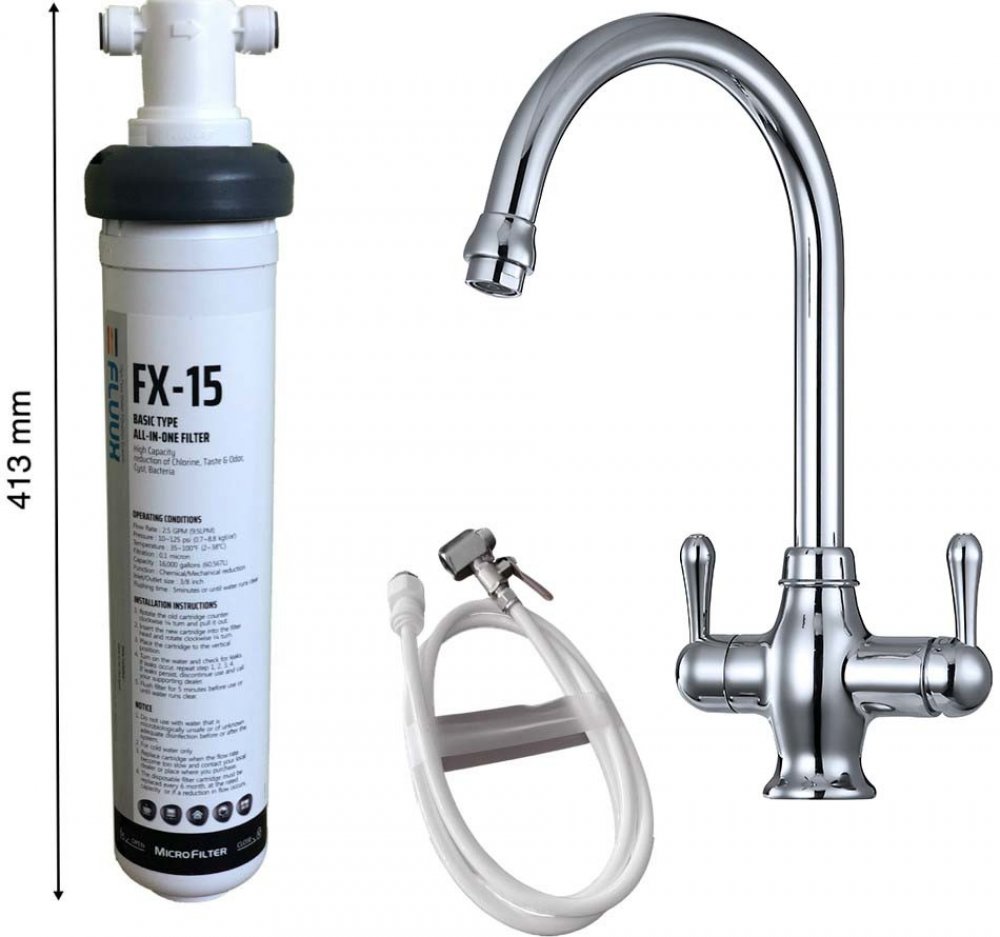Výhodný set trojcestné dřezové baterie a multifunkčního bajonetového filtračního systému. Systém k umístění do spodní skříňky kuchyňské linky. Snadná a rychlá výměna filtrační patrony, kterou zvládne vyměnit každý snadno a rychle bez použití nářadí. Filtrovaná voda má svou vlastní vodní cestu na dřez bez nutnosti instalace přídavné baterie/výdejního kohoutku. Vhodné pro domácnosti i kanceláře.