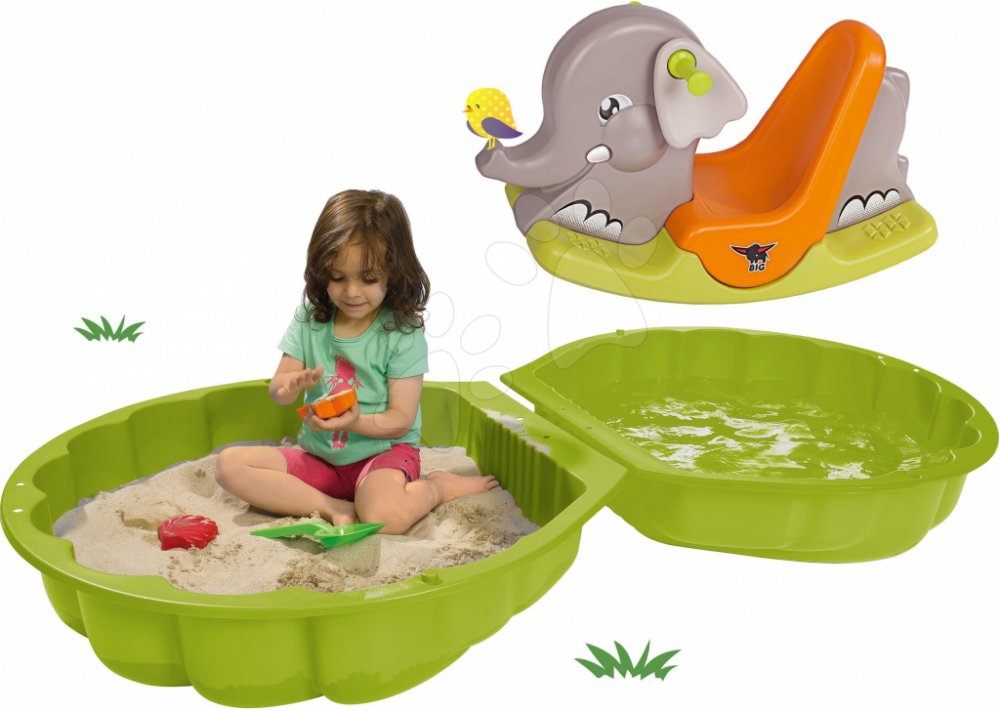Watershell Green BIG Set pieskovisko mušľa dvojdielnezelené a hojdačka slon BIG7723-4