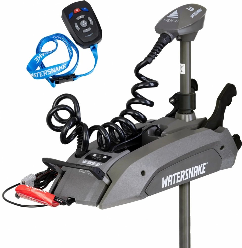 Elektrický motor Watersnake Stealth Bow Mount obsahuje všechny základní funkce elektromotoru v energeticky chytrém provedení, které vyžaduje pouze jednu 12voltovou baterii. Model Stealth je vybaven tahem 54 liber nebo 65 liber, takže má dostatečný výkon pro většinu přívěsných člunů. Za typických podmínek použití a s vhodnou baterií poskytuje motor Stealth hodiny provozu na vodě.