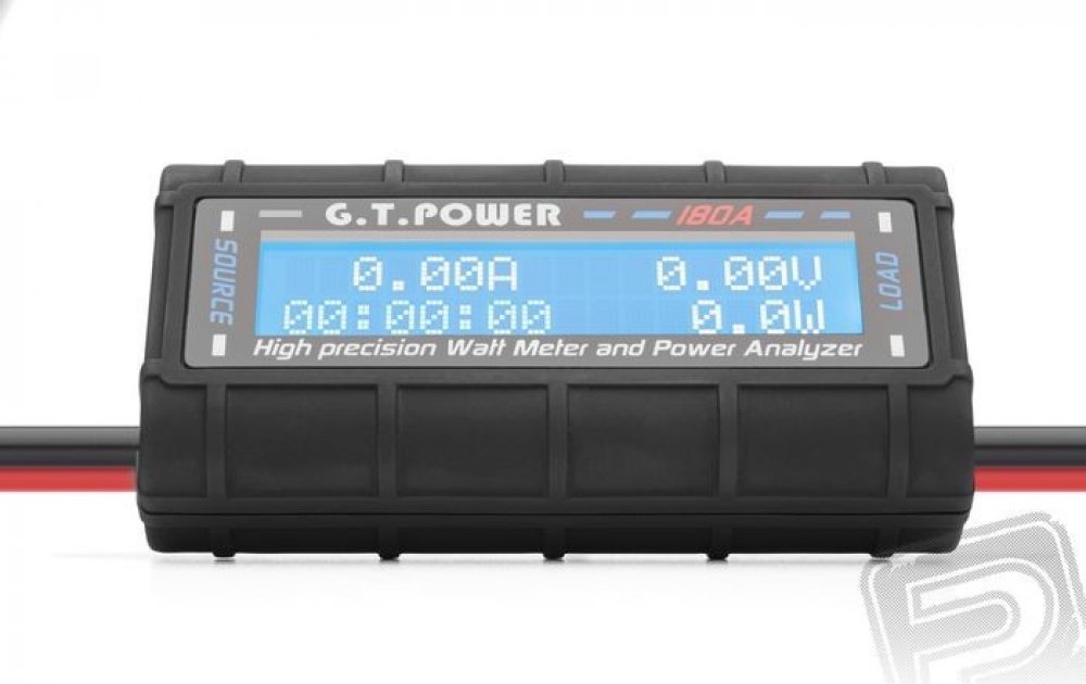 Napájecí zdroj (např. pohonný akumulátor) se připojuje ke vstupním kabelům wattmetru. Spotřebič/zátěž (např. regulátor otáček s motorem) se připojuje výstupním kabelům wattmetru. Je-li napětí měřeného zdroje nižší než 4,8 V, je třeba zajistit napájení elektroniky wattmetru připojením zdroje s napětím 4,8-6,0 V do zásuvky na levém boku (např. přijímačového akumulátoru NiMH 4,8 V).