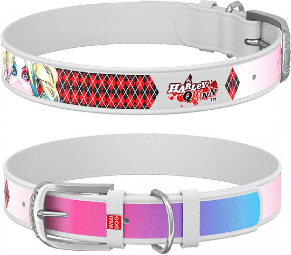 WAUDOG obojek kožený DC Harley Quinn bílý (44-58cm/3,5cm) - Jsi zlobivka, neřízená střela nebo kolem sebe tvoříš chaos? Vše ti bude odpuštěno s obojkem Harley Quinn. - Jsi zlobivka, neřízená střela nebo kolem sebe tvoříš chaos? Vše ti bude odpuštěno s obojkem Harley Quinn.
