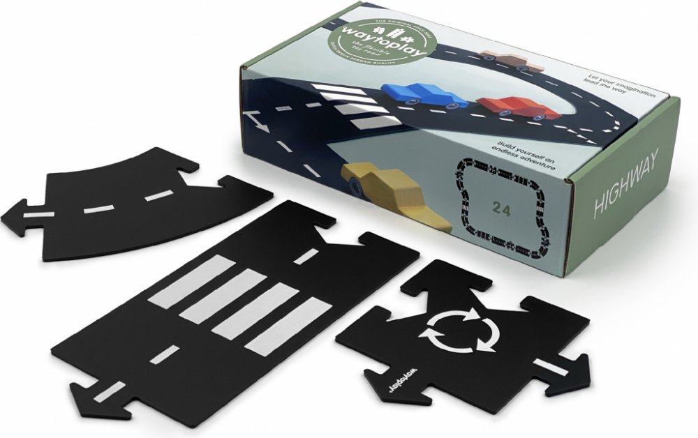 24-dílná sada flexibilní silnice HIGHWAY nabízí dětem šanci vytvořit různé dráhy pro jejich oblíbená autíčka, záleží jen na jejich fantazii.