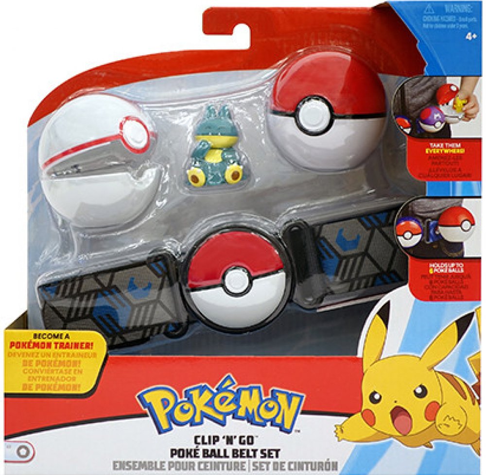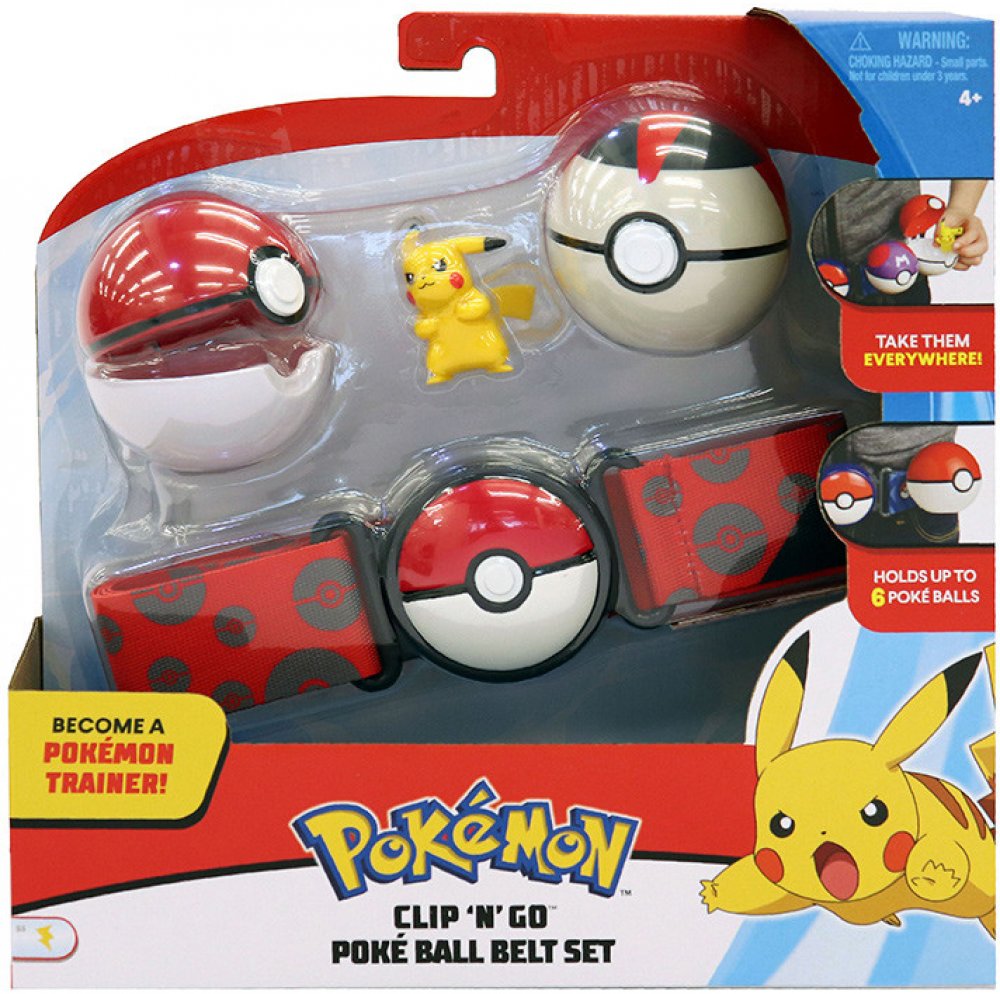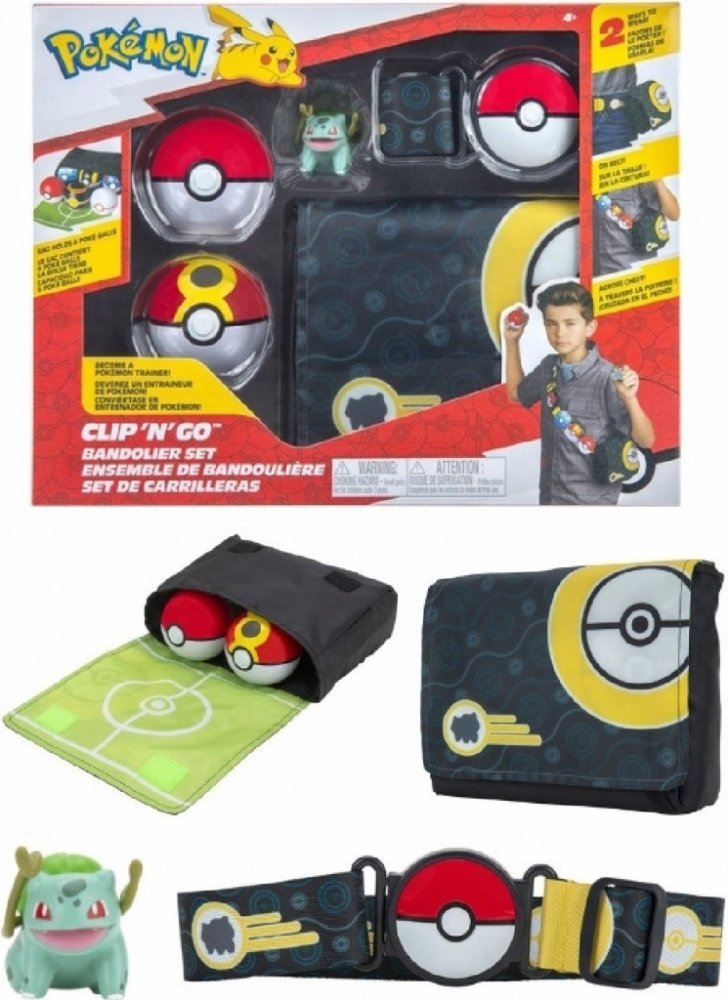Stanete se trenérem s Clip´N´Go Pokéball Belt! Sada obsahuje jeden nastavitelný pás, 2 Pokébally a jednu figurku Pokémona. Každý pás pojme až šest Pokéballů najednou. Další Pokéball a figurky se prodávají samostatně.