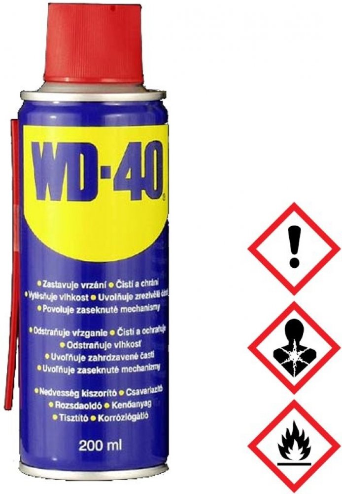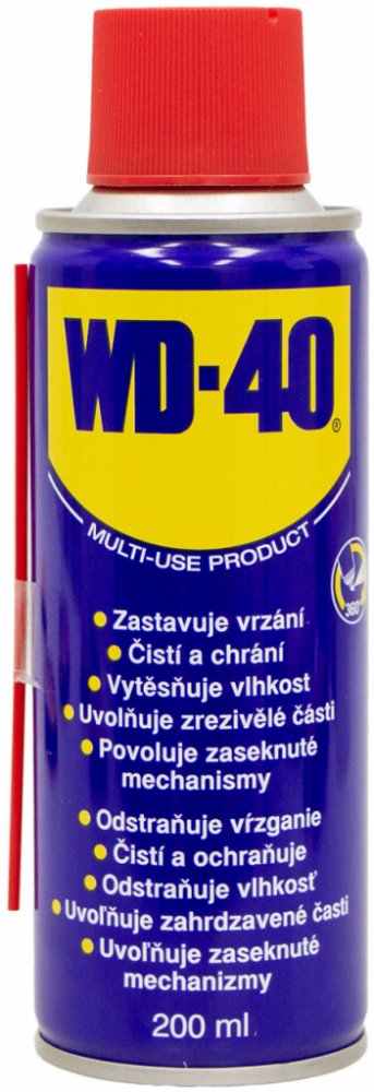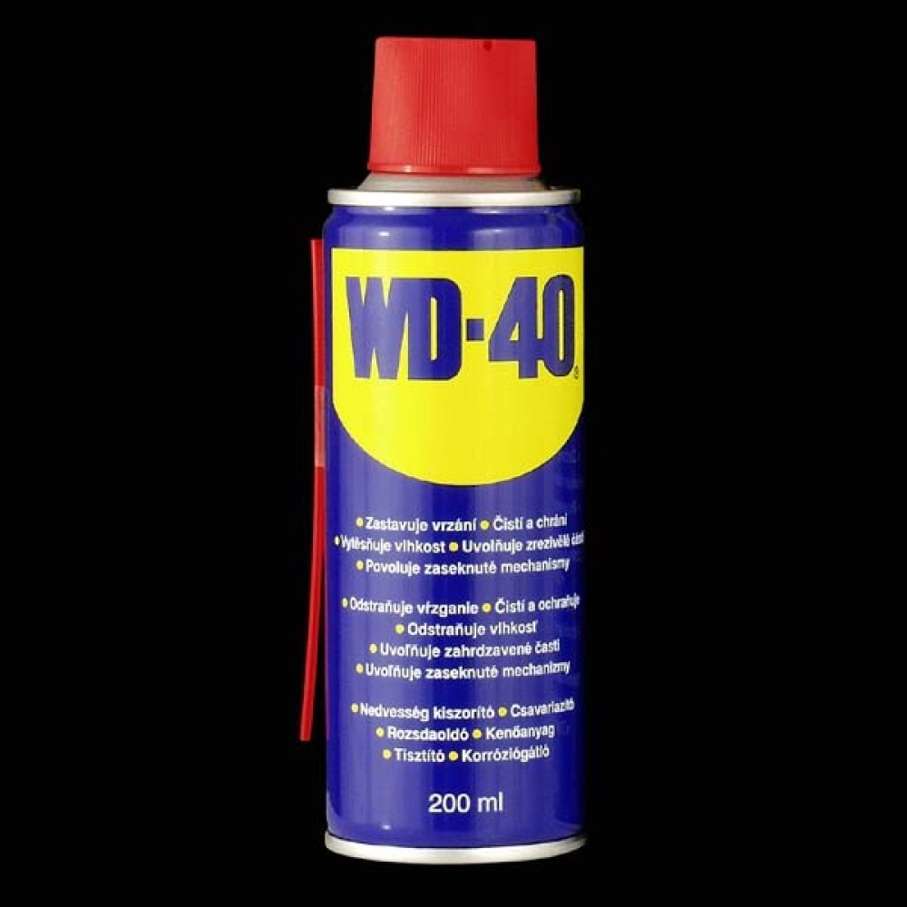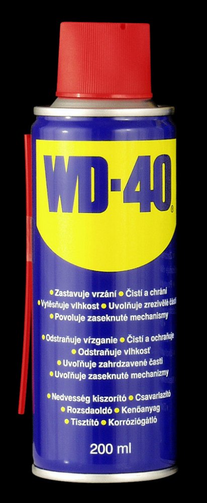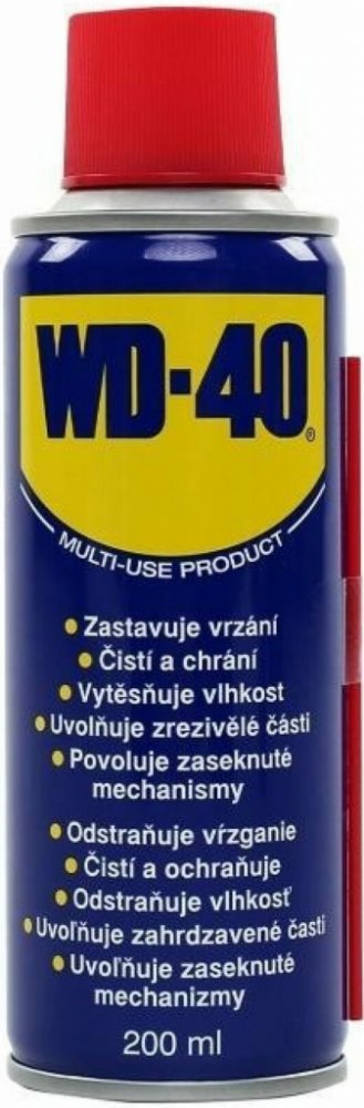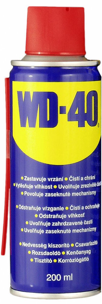 Čistící a konzervační olej WD 40 - 200 ml. Legenda mezi konzervačními oleji, velmi dobře vytěsňuje vodu z různým mechanizmů. Velmi široké spektrum použití.