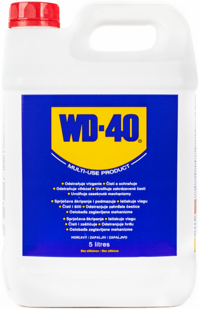 WD-40 chrání kovy před rzí a korozí, proniká zaseknutými díly, vytěsňuje vlhkost a maže téměř všechno. Z většiny povrchů odstraňuje dokonce i mastnotu, špínu a další.