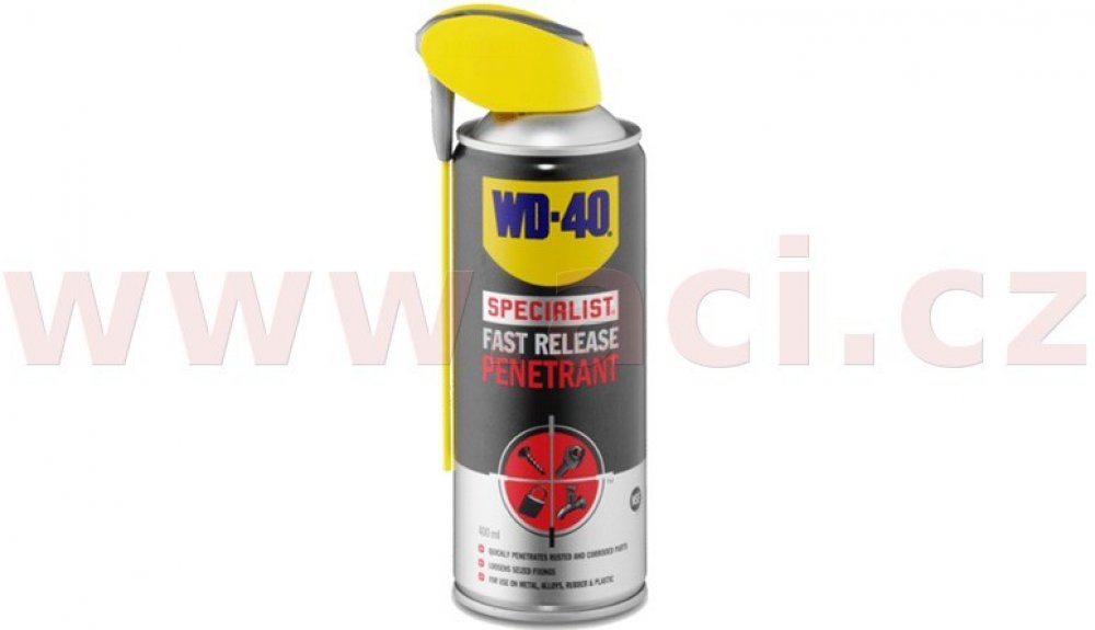 WD-40® Tento rychle účinkující penetrant proniká do těžko přístupných míst. Rychle uvolní zadřené upevňovací prvky i přilepené nebo rezavé pohyblivé části. Vysoce voděodolný.