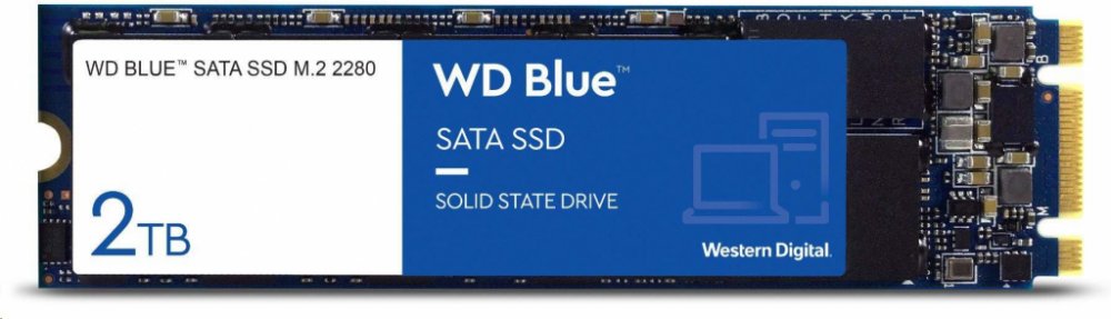 WD 2000 GB M.2 SATA 6Gb/s 3D NAND pro vyvážený výkon bez otáček pro lehké zápisy WD Blue 7.0 g M.2 2280 modré 560 MB/s 530 MB/s 100.0 TBW 1750000 hodiny